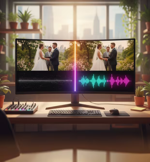 We specialize in crafting an immersive auditory experience that complements your visual memories. From enhancing ceremony vows to balancing reception speeches with background music, our audio enhancement services include professional voiceover options to add narrative depth to your wedding story.